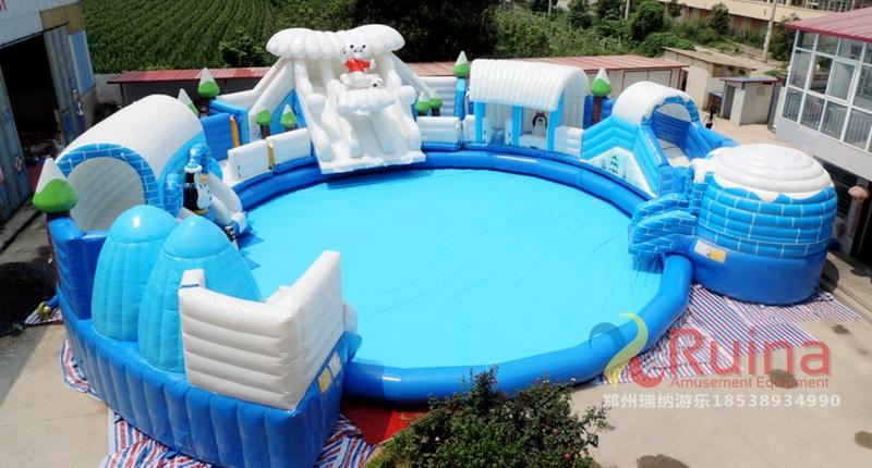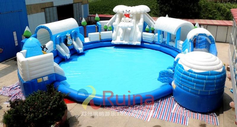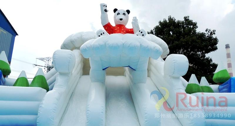冰雪世界充氣城堡以小朋友喜愛的冰雪企鵝為主題元素,造型逼真,搭配上充氣水池使用,營造出了一個逼真的冰雪世界,非常討小孩子喜歡。該款充氣城堡搭配充氣泳池使用,滿足親自游玩的需求!再加上沖浪水滑梯和支架水池的結(jié)合,定會讓孩子有個開心的游玩經(jīng)驗