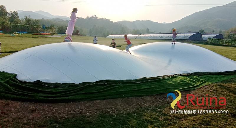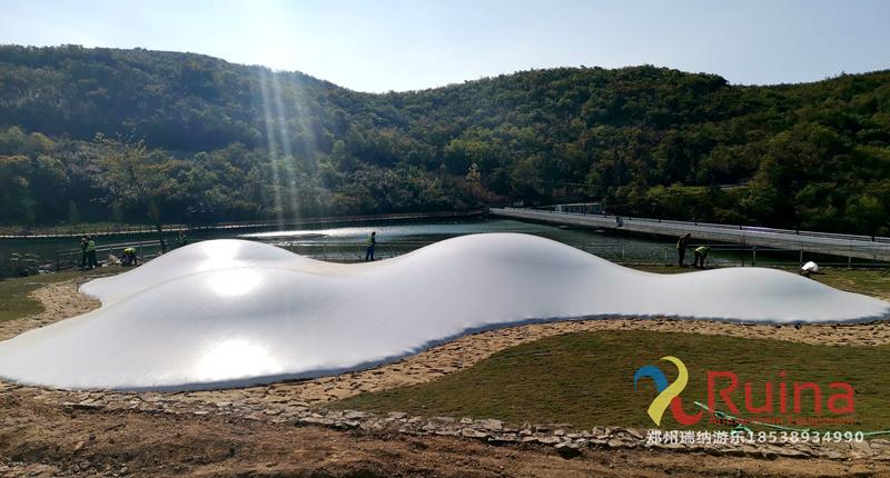 蹦蹦云樂園是新型無動力互動體驗式項目。形狀像朵朵白云,行云流水。尺寸根據(jù)場地環(huán)境設(shè)計而成吧,外觀形態(tài)不重復(fù)。不破壞土地,與大自然融為一體,藍(lán)天白云渾然天成??商?、可坐、可滑、可躺、適合家庭親子休閑游樂,沒有年齡限制。設(shè)施無需電力持續(xù)驅(qū)動,材料選用日本平崗進口膜材耐磨、抗紫外線、自潔,保證外膜長期被游客坐臥、踩踏、彈跳后,再次清洗后依然清潔如新。